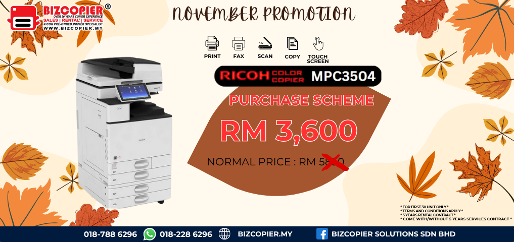 Sales, support and maintenance of Ricoh copier throughout Selangor and Klang Valley area